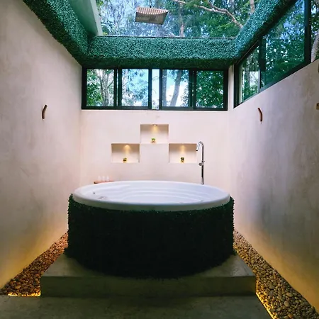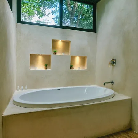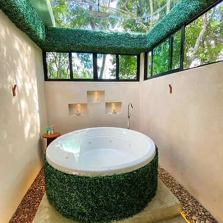 Villas Zamna - Jungle Villas está situada a 1 km del Santuario de Abejas Mayas y cuenta con terraza solárium y jardín para garantizar una estancia memorable. Con un patio soleado, esta villa está situada a una distancia de 7 km del Pueblo del Maíz.